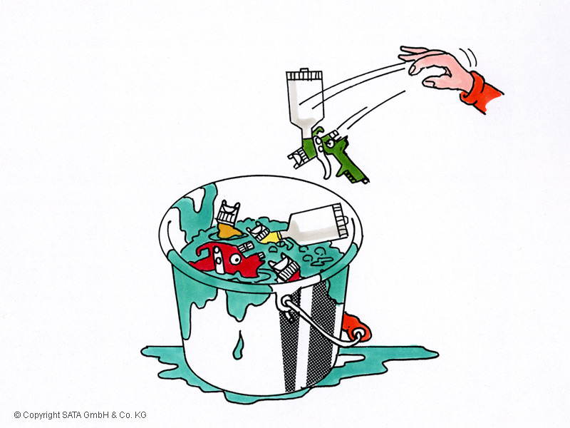 在清理噴嘴時(shí)常常使用錯誤的工具(例如回形針和鋼絲刷),這樣做將導致噴嘴被破壞,只有通過(guò)更換噴嘴套裝才能恢復如初。為了能夠細致的清洗,特別是風(fēng)帽等部位,我們推薦使用SATA清洗套裝(訂購號64030)以保證在更長(cháng)時(shí)間內保持SATA噴槍的品質(zhì)。