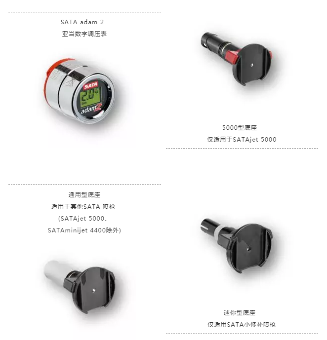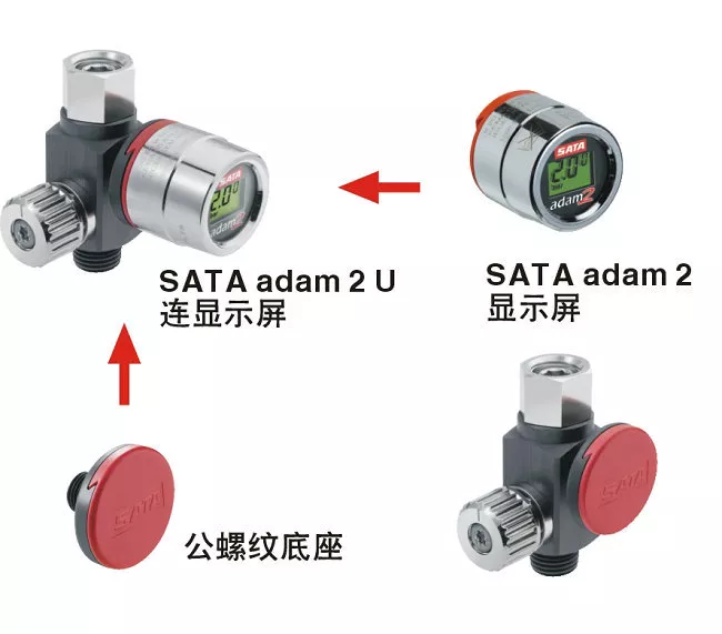 - 安裝在噴槍槍尾進(jìn)氣口,配合SATA adam 2亞當數字調壓表可把標準噴槍升級為數字調壓噴槍