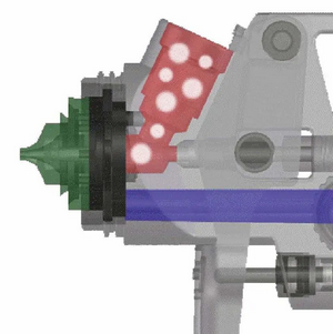 解決方法:更換空氣分流環(huán)。安裝時(shí)把空氣分流環(huán)后的定位桿對準槍頭的小孔,用雙手姆指把空氣分流環(huán)平均地輕輕壓進(jìn)槍頭內,再裝上噴嘴,并用SATA原裝扳手擰緊,然后松開(kāi)在擰緊一次。