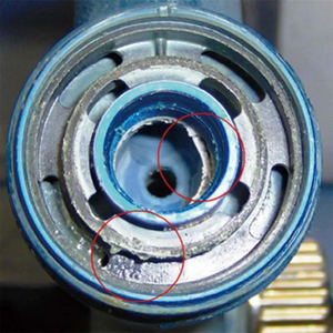 噴幅調節旋鈕主軸被油漆殘渣污染,導致旋轉噴幅調節旋鈕時(shí)把主軸螺紋弄壞。