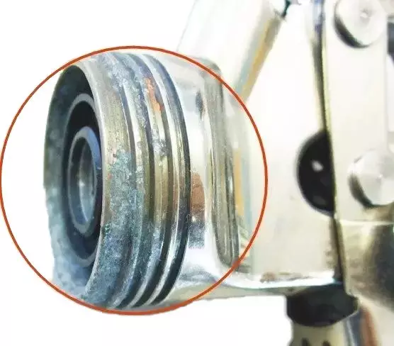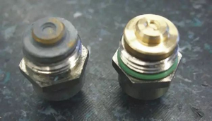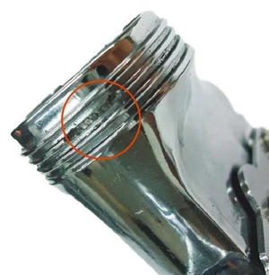 ②、噴槍清洗后沒(méi)有徹底吹干或沒(méi)有把風(fēng)帽取下吹干,清洗液殘渣對螺紋上的電鍍層表面造成破壞。