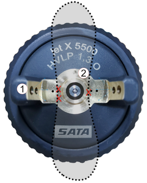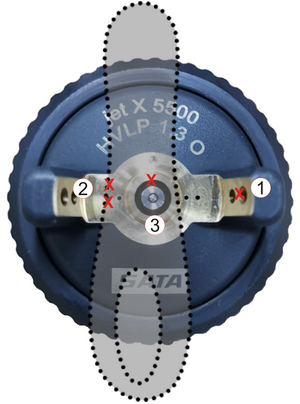 后果: 風(fēng)帽中央霧化孔與噴嘴間的間隙不均勻令霧化的油漆傾向一邊。