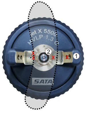 2、噴涂氣壓太高(圖中1位置)