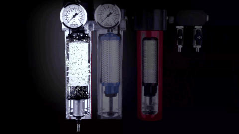 很多物質(zhì)會(huì )污染壓縮空氣,為了確保壓縮空氣的品質(zhì),需要安裝終端油水分離器以最大限度地去除壓縮空氣中的油分、油蒸汽、冷凝水、蒸發(fā)水、顆粒雜質(zhì)、塵埃、污垢、金屬磨損碎片等。下圖為三節油水分離器的解剖模型。油水分離器的工作原理如下。