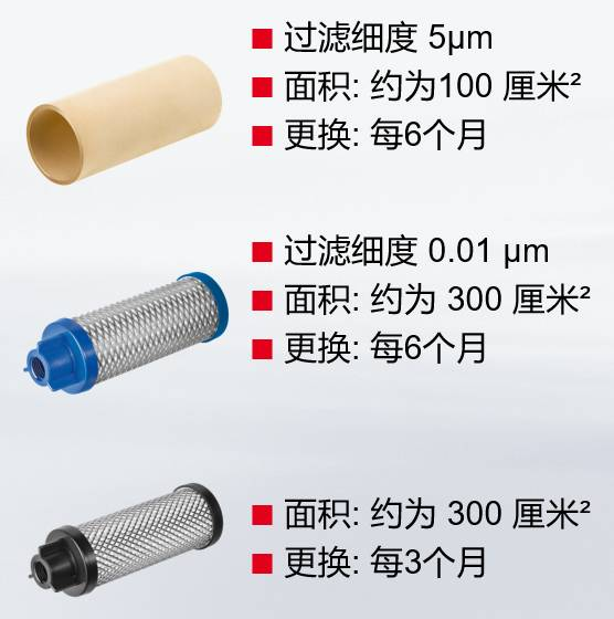 第三節油水分離器采用活性炭濾芯以吸附壓縮空氣中的有機異味和油蒸汽,潔凈度達100%。特別適用于當佩戴全面式供氣面罩時(shí)和使用現代化油漆系統(水性漆)?;钚蕴繛V芯的更換周期為不超過(guò)3個(gè)月。