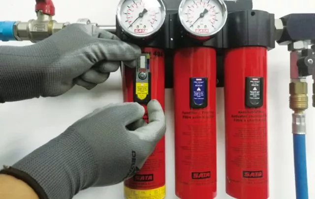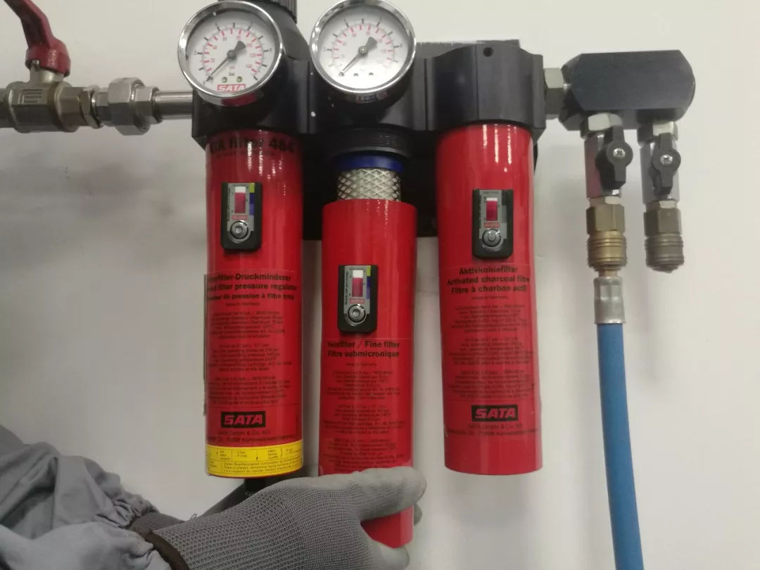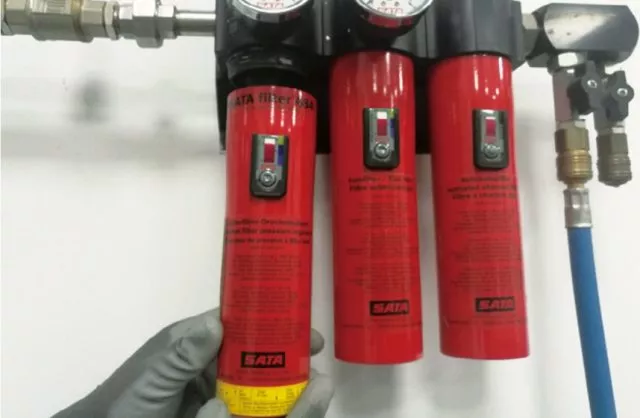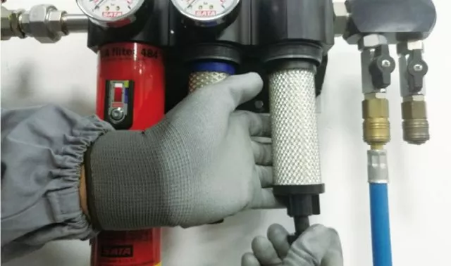 要獲得理想的涂裝效果(避免涂裝瑕疵的產(chǎn)生)和安全的呼吸保護(防止對健康造成危害),需要對油水分離器進(jìn)行維護。油水分離器維護應根據其濾芯計時(shí)器提示標準進(jìn)行。終端油水分離器的維護操作步驟如下。